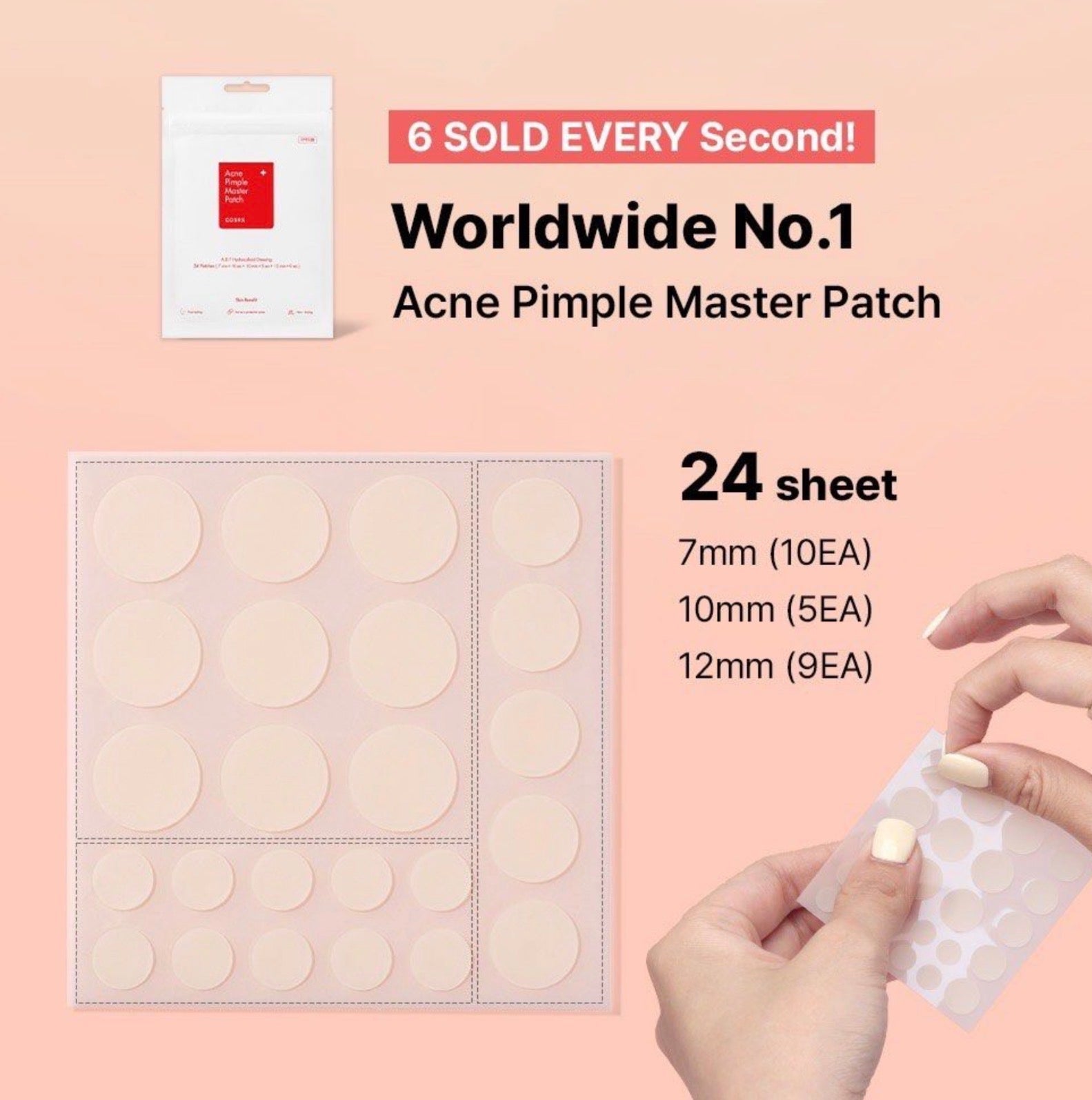 - Select COSRX pimple patch (7mm, 10mm, 12mm) according to the size of the trouble area.