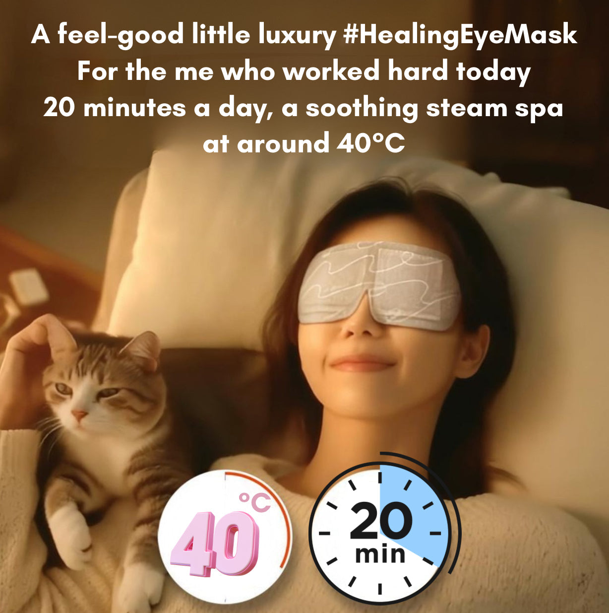 Experience relaxation and comfort with this steam eye mask that gently warms your eyes to approximately 40℃ for about 20 minutes, helping to relieve tension.