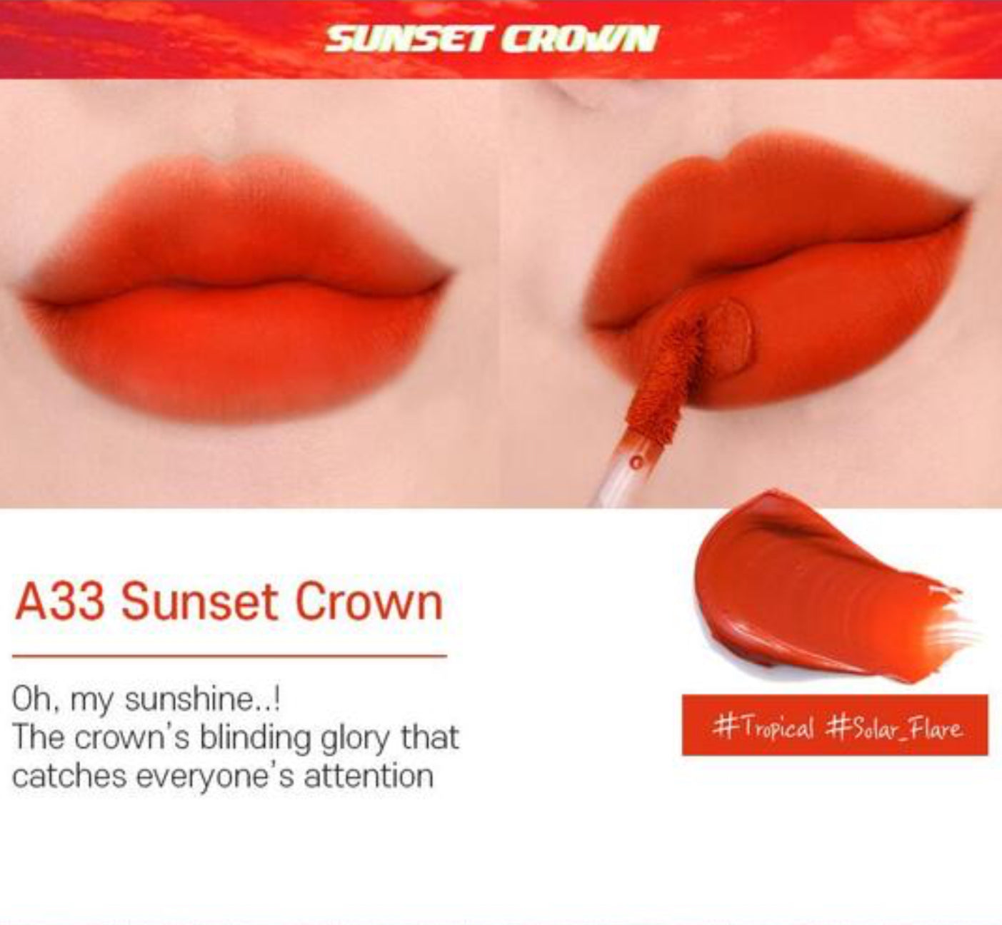 The packaging is nice, shiny with glitter, and luxurious looking. The color is mixed between red and orange. It makes out a very trendy color. It also looks good on any outfit. I will very highly recommend it to all!!!!!!! Get it right now!!!!!