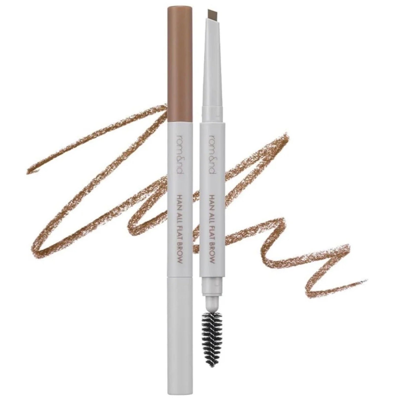 rom&nd's Han All Flat Brow pencil boasts an angled flat tip for quick filling and precision when you need it. A non-clumping, long-lasting formulation with unbelievable staying power, even through sweat and water, thanks to its wax and castor oil-based coating.