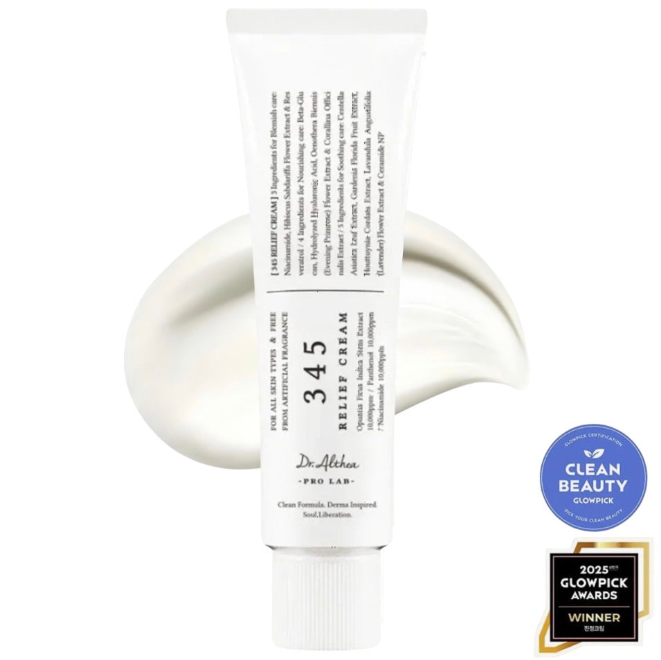 Dr. Althea 345 Relief Cream, original formula, is a lightweight, nutrient-rich gel-cream designed to soothe, nourish, and regenerate the skin while addressing acne aftermath, blemishes, and signs of aging. Enriched with Niacinamide, Panthenol, and Opuntia Ficus-Indica Stem Extract (10,000ppm each), it strengthens the moisture barrier, regulates oil production, fades dark spots, and provides deep hydration for dry and sensitive skin. The addition of Resveratrol delivers powerful antioxidant protection, enhances cell turnover, and improves elasticity, while Adenosine smooths fine lines for a glowing complexion.