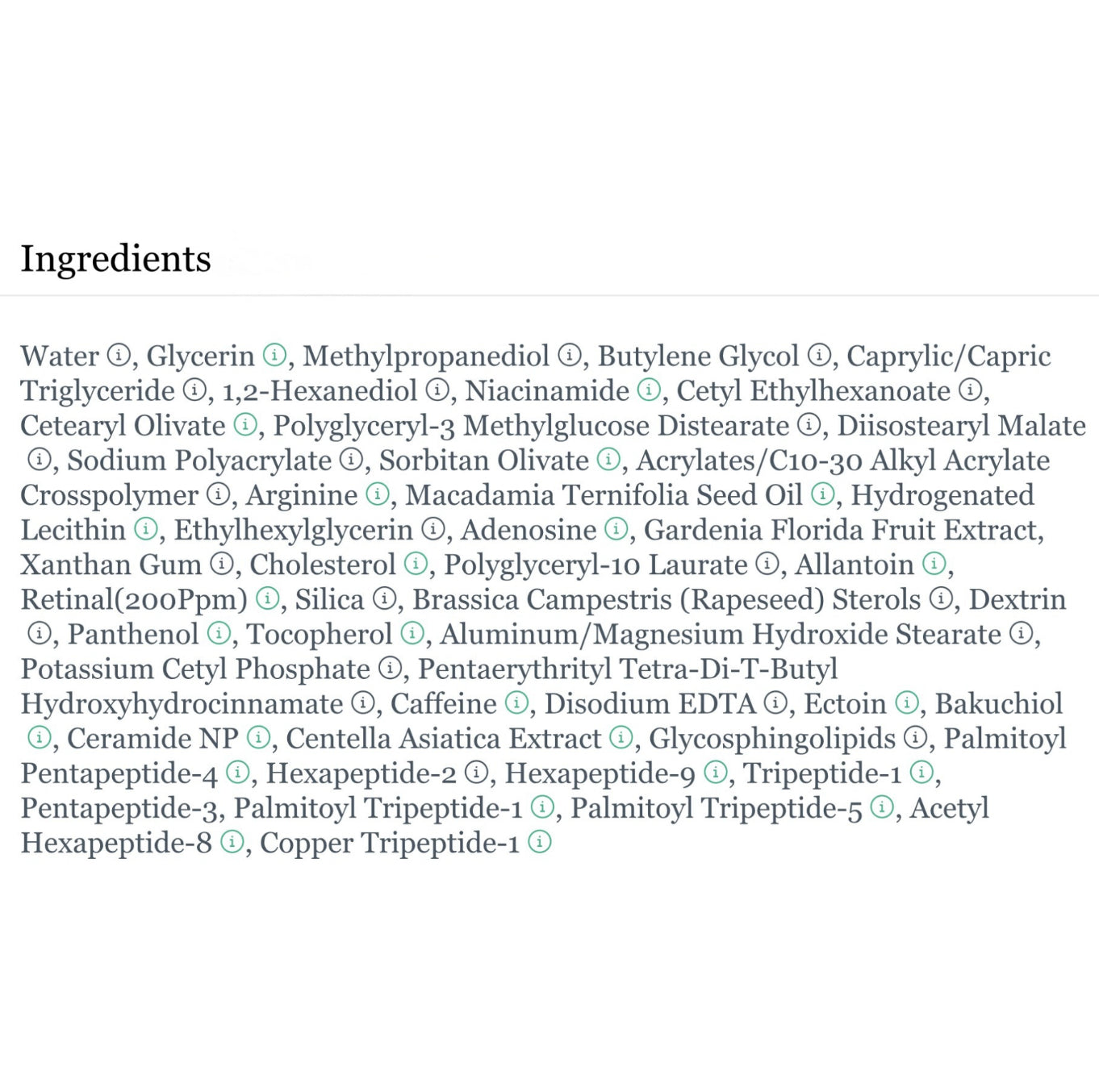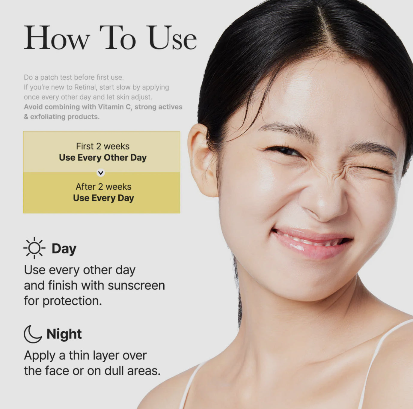 • Retinal (Vitamin A): Refines skin texture and firms skin for a lifted, youthful look.