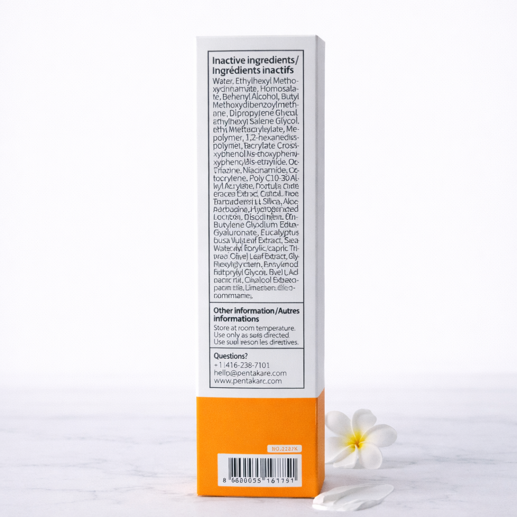 Water, Ethylhexyl Methoxycinnamate, Homosalate, Behenyl Alcohol, Butyl Methoxydibenzoylmethane, Dipropylene Glycol, Ethylhexyl Salicylate, Methyl Methacrylate Crosspolymer, 1,2-Hexanediol, Glycerin, Bis-ethylhexyloxyphenol Methoxyphenyl Triazine, Niacinamide, Octocrylene, Poly C10-30 Alkyl Acrylate, Portulaca Oleracea Extract, Carbomer, Tromethamine, Silica, Aloe Barbadensis Leaf Water, Adenosine, Hydrogenated Lecithin, Disodium EDTA, Butylene Glycol, Sodium Hyaluronate, Eucalyptus Globulus Leaf Extract, Bambusa Vulgaris Extract, Sea Water, Caprylic/Capric Triglyceride, Pentylene Glycol, Caprylyl Glycol, Phenoxyethanol, Olea Europaea (Olive) Leaf Extract, Adansonia Digitata Seed Extract, Ceramide NP, Ethylhexylglycerin, Fragrance, Citrus Aurantium Bergamia (Bergamot) Fruit Oil, Limonene, Linalool.