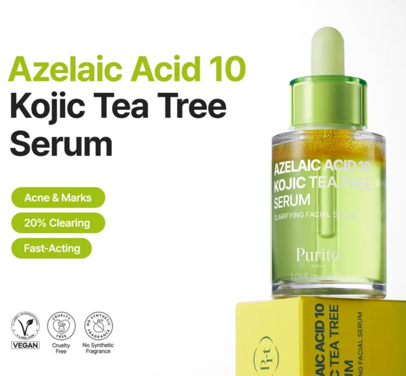 Recommended Routine: Cleanser → Toner → Azelaic Acid 10 + Tea Tree + Kojic Acid Serum → Cream → Sunscreen
