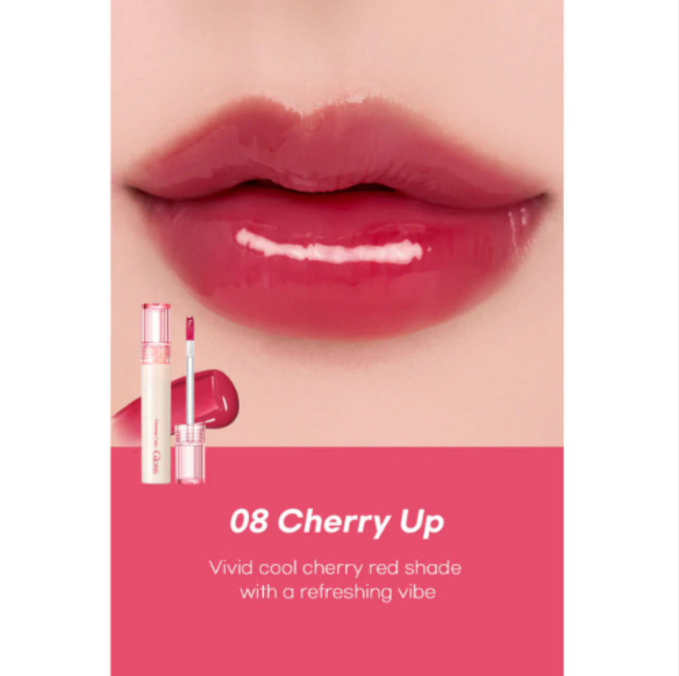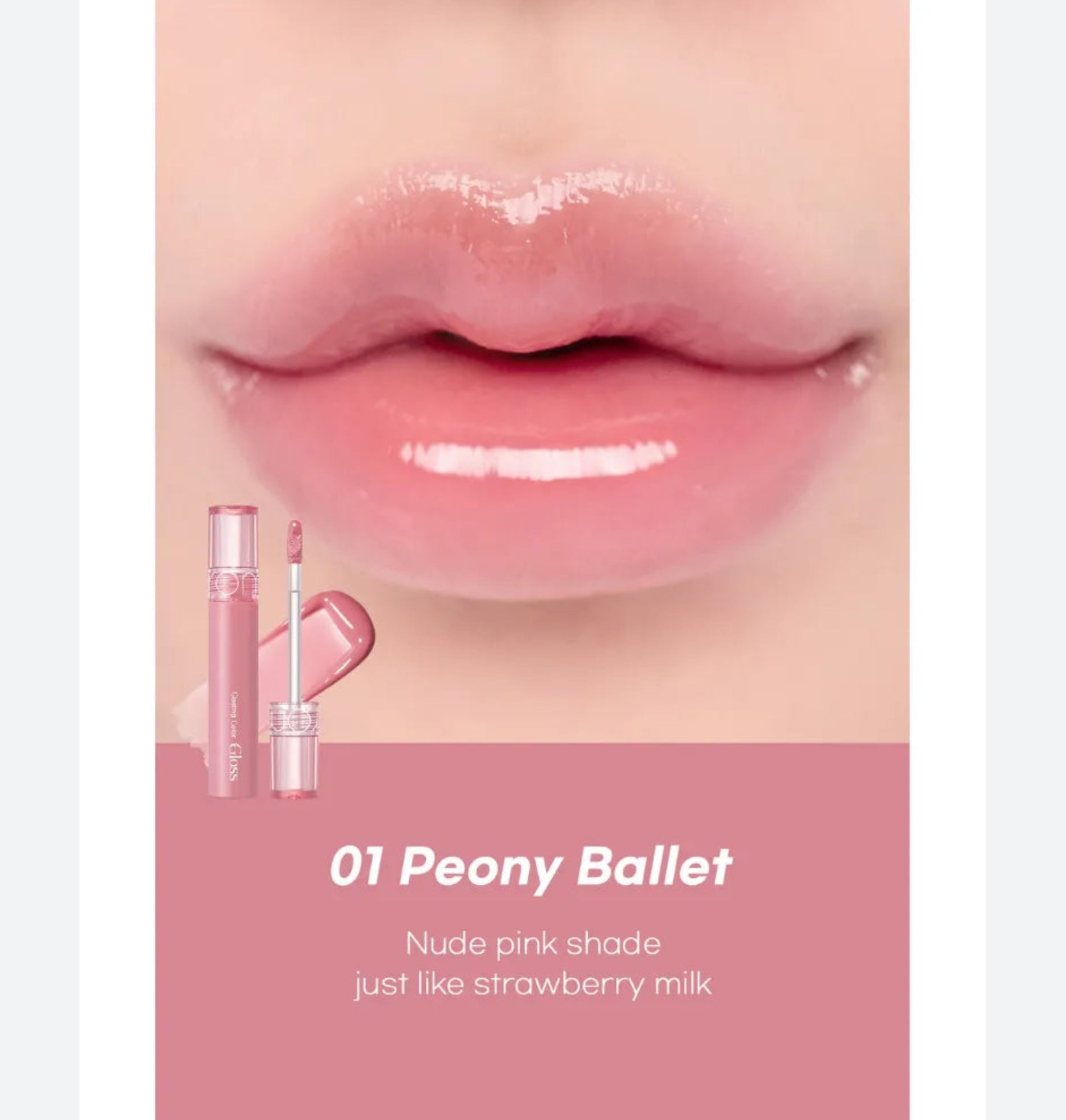 Experience a plump, juicy, angel-ring glow with this ultra-shiny lip gloss that smooths lip lines and creates a soft, voluminous finish. The high-refractive oil formula delivers a glass-like shine from every angle, while the vivid yet transparent color payoff builds beautifully with each layer—pure on the first swipe and richer when reapplied. Its texture is perfectly balanced: not too watery, not sticky, and glides smoothly across the lips thanks to moisturizing essential oils and high-viscosity wax. Lightweight and comfortable for all-day wear, this gloss enhances your natural lips while staying put. Available in multiple glowing shades including Peony Ballet, Nutty Vague, Rose Finch, Grapy Way, Dim Mauve, Spring Fever, and Cherry Up.