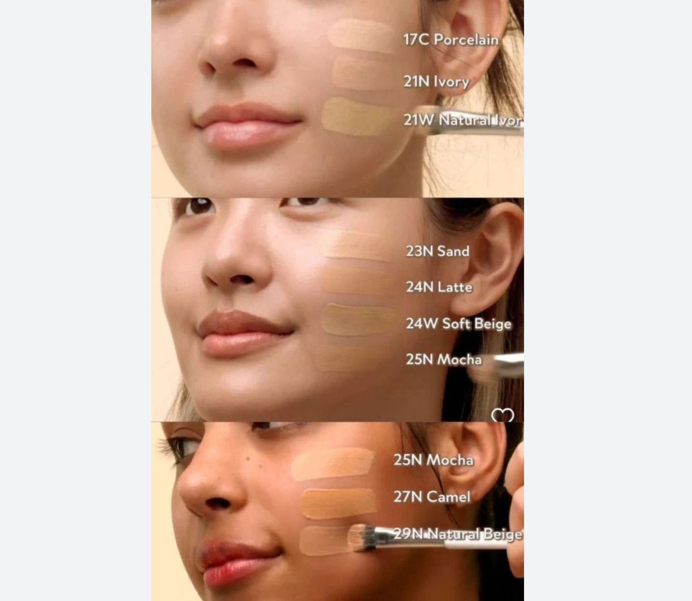 Water, Cyclopentasiloxane, Iron Oxides (CI 77499), Dimethicone, Synthetic Fluorphlogopite, Trimethylsiloxysilicate, Propanediol, Iron Oxides (CI 77491), Diphenylsiloxy Phenyl Trimethicone, Niacinamide, PEG-10 Dimethicone, Iron Oxides (CI 77492), Isododecane, PEG/PPG-18/18 Dimethicone, 1,2-Hexanediol, Triethoxycaprylylsilane, Magnesium Sulfate, Octyldodecanol, Disteardimonium Hectorite, Potassium Sorbate, Fragrance(Parfum), Polyglyceryl-4 Isostearate, Adenosine, Trisodium Ethylenediamine Disuccinate, Isopropyl Titanium Triisostearate, Polymethyl Methacrylate, Haematococcus Pluvialis Oil, Butylene Glycol, Titanium Dioxide (CI 77891), Glycerin, Dipropylene Glycol, Sodium Palmitoyl Proline, Cetearyl Dimethicone/Vinyl Dimethicone Crosspolymer, Hibiscus Sabdariffa Flower Extract, Astaxanthin, Polyglyceryl-3 Polydimethylsiloxyethyl Dimethicone, Aluminum Hydroxide, Polyhydroxystearic Acid, Rosa Rugosa Flower Extract, Pancratium Maritimum Extract, Neopentyl Glycol Diethylhexanoate, Nymphaea Alba Flower Extract, Propolis Extract