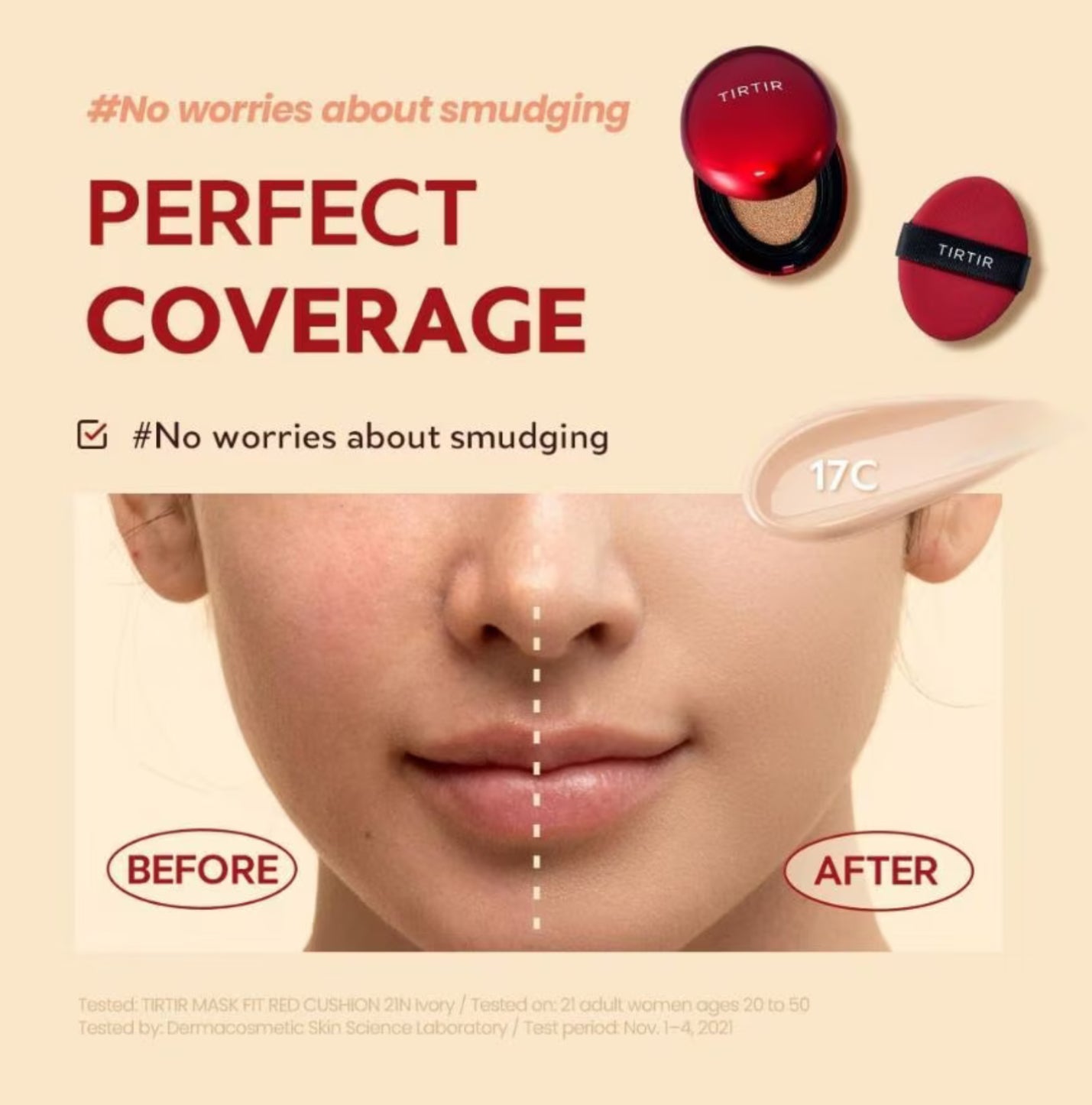TIRTIR Mask Fit Red Mini Cushion Foundation offers the best cushion foundation for dry skin, providing high coverage that conceals blemishes and redness while ensuring lasting hydration. Infused with nourishing ingredients like Hibiscus Sabdariffa Flower Extract, Propolis Extract, and Astaxanthin, it not only enhances your complexion but also keeps your skin moisturized throughout the day.