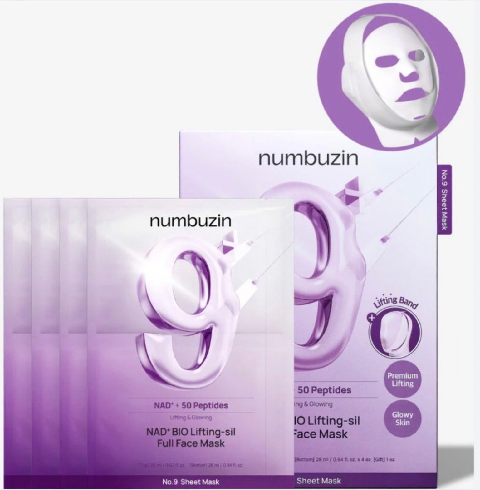 NUMBUZIN No.9 NAD Bio Lifting Full Cover Facial Mask is a 3-step lifting and wrinkle-care mask designed to firm, tighten, and rejuvenate the skin. Infused with NAD+, Collagen, and 50 Peptides, this advanced formula provides an instant lifting effect, visibly reducing sagging, puffiness, and fine lines while improving skin elasticity.