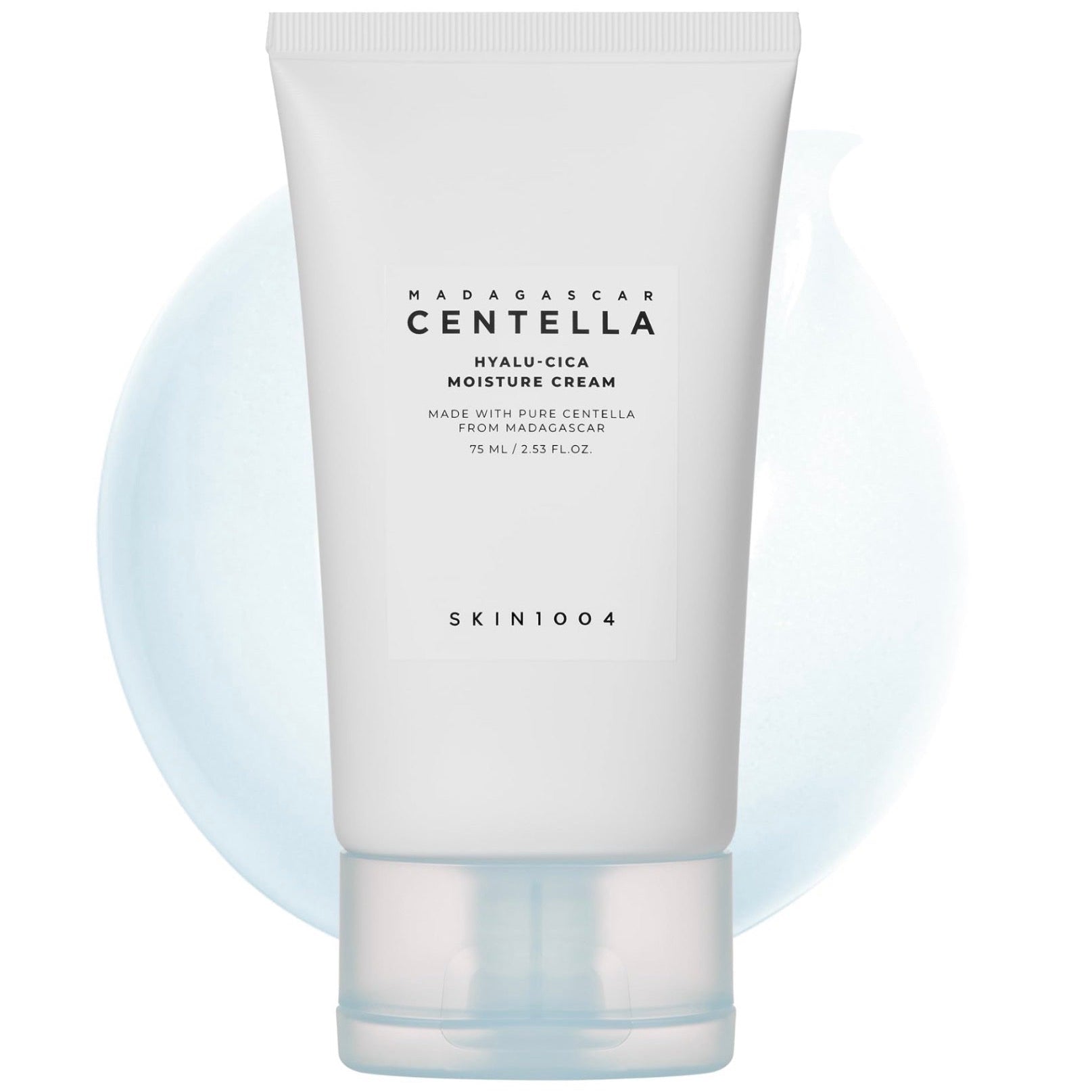 SKIN1004 Madagascar Centella Hyalu-Cica Moisture Cream is a hydrating formula with a balanced Hyaluronic Acid & Centella ratio to provide calming effects. Containing 50% concentrated Centella Asiatica, it helps to reduce inflammation, protect skin's barrier and repair damage with effective antioxidants. Plant-derived collagen, Adenosine, and Hyaluronic Acid provide moisture and boost skin's elasticity for a firmer look. Niacinamide combines with mild chemical exfoliators to create a brighter, more even complexion. Free of ethanol, artificial scent, mineral oil and essential oil, its lightweight texture absorbs quickly, leaving skin refreshed and supple. Suitable for all skin types.