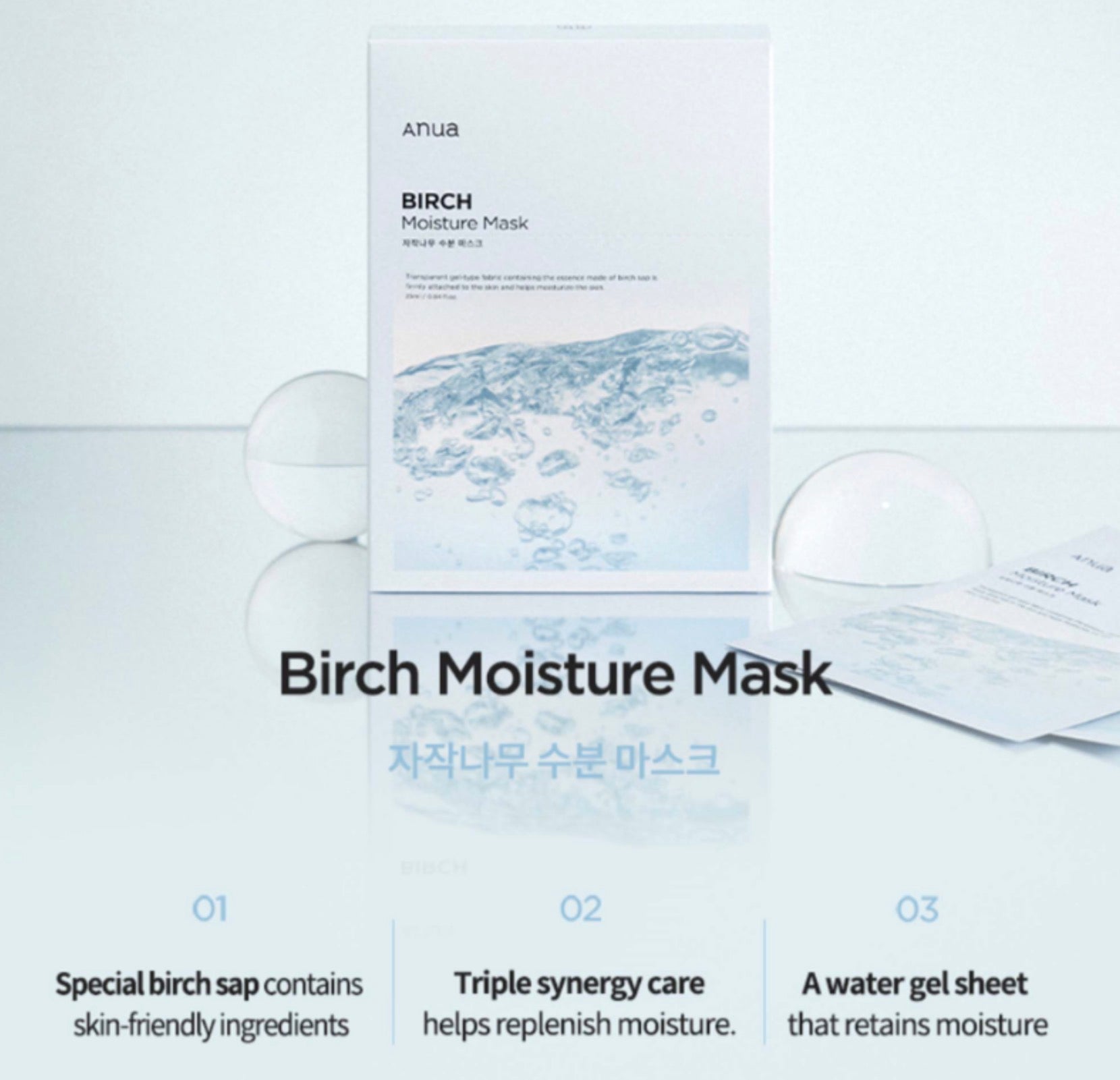 Anua Birch Moisture Mask is a moisturizing sheet mask formulated with Birch Sap from Gangwon-do that delivers intense hydration to the skin and helps maintain the skin's vitality with rich Vitamins A, C and minerals.