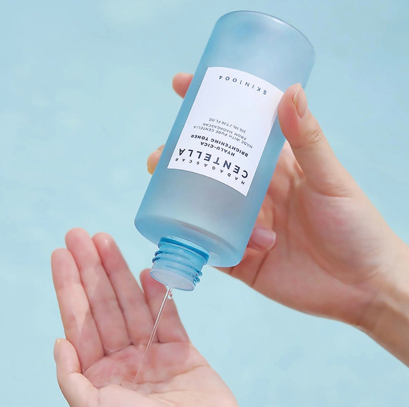 SKIN1004 Madagascar Centella Hyalu-Cica Brightening Toner gently exfoliates dead skin and unclogs pores, infusing the skin with brightening and anti-aging benefits. Clinically tested Hyalu-Cica formula hydrates and calms dry, sensitive skin. AHA and LHA exfoliate and remove impurities, boosting the skin's clarity and elasticity. 74% Madagascan Centella Asiatica leaf water helps reduce redness and inflammation.