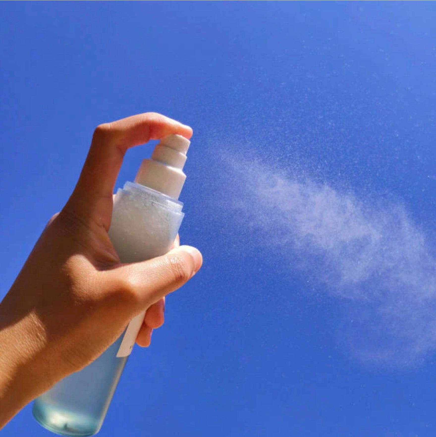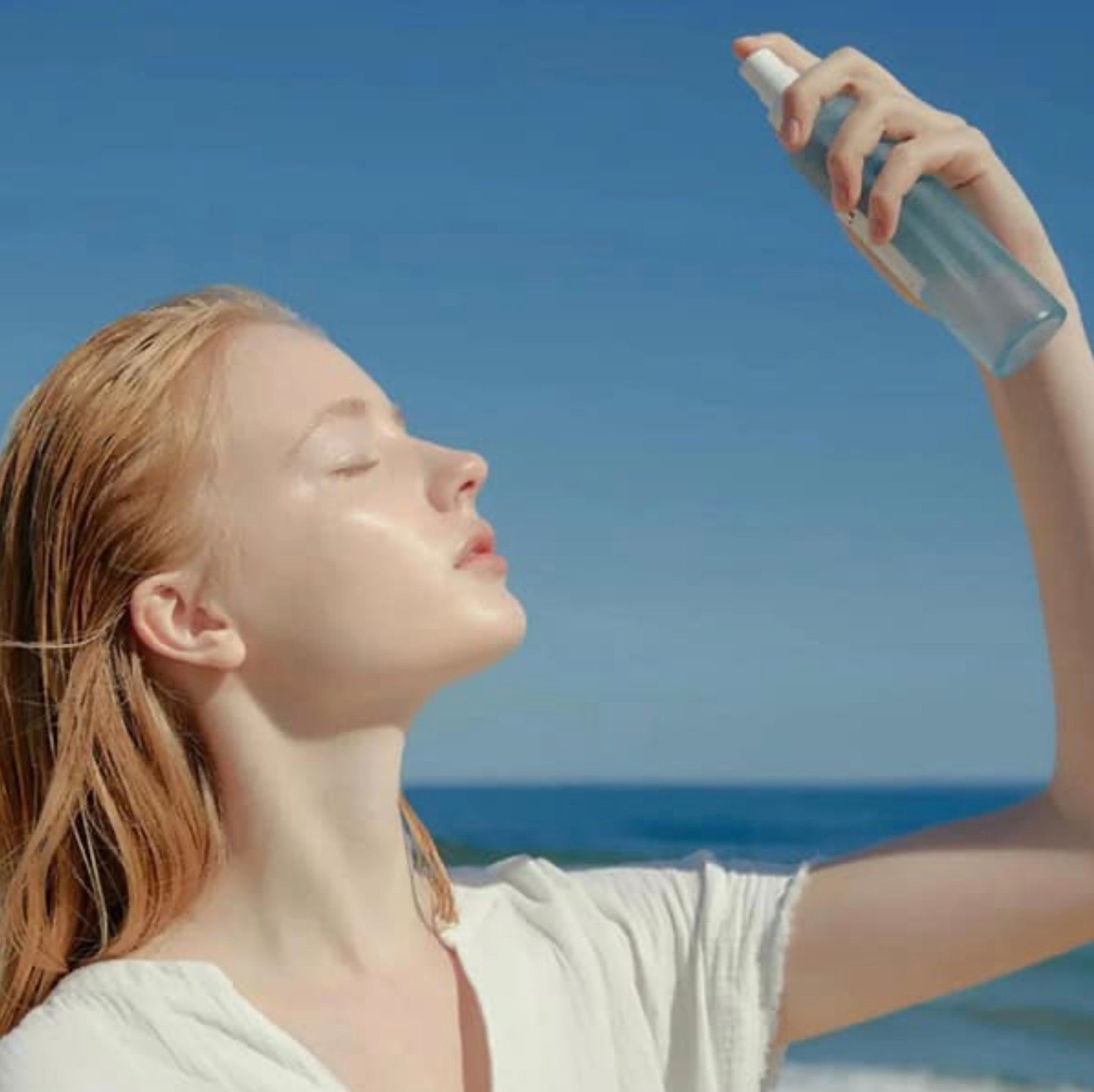 Spray the product from a distance of 20-30 cm from the face, then allow to dry with the air or gently dab with your fingertips.