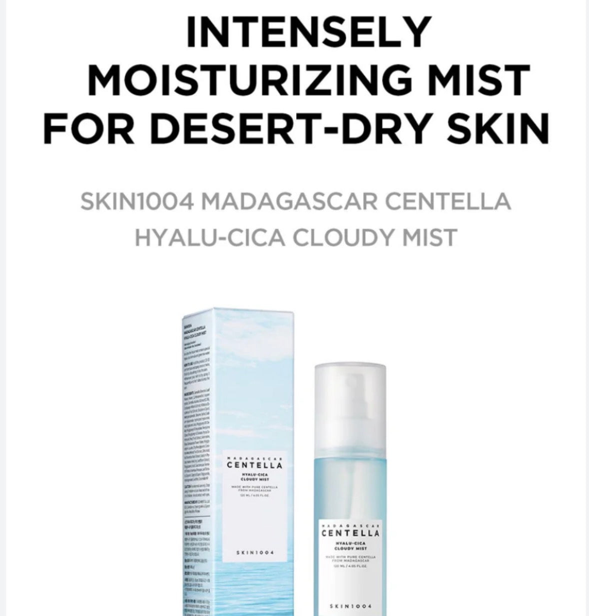 SKIN1004 Madagascar Centella Hyalu-Cica Cloudy Mist is specially designed to deliver a hydrating, radiant complexion. Its ultra-fine mist spray helps lock in moisture and minimize the appearance of fine lines. This product features hyalu-cica, which helps to replenish hydration, along with green tea leaf extract for powerful skin protection and restorative effects.
