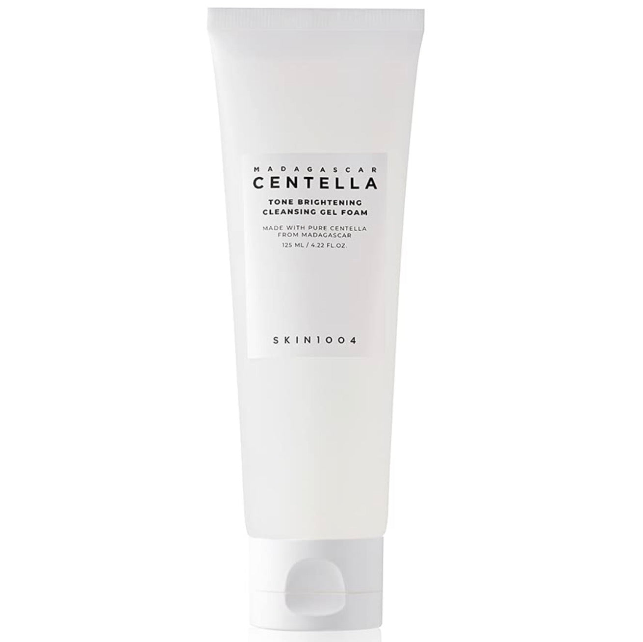 SKIN1004 Madagascar Centella Tone Brightening Cleansing Gel Foam is a powerful, yet gentle cleanser that quickly and effectively removes dirt and makeup. Its luxurious, natural-derived foam and surfactants cleanse deeply, while leaving skin hydrated. The patented MadeWhite™ Madecassoside ingredient extracted from Madagascan Centella Asiatica in the cleanser provides antioxidant, calming and anti-inflammatory benefits. Niacinamide strengthens skin and enhances complexion. Its mildly acidic pH-balancing formula helps even skin tone.